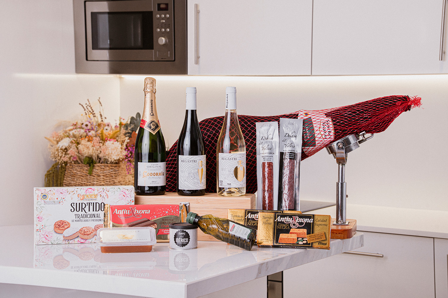 • El Lote Berna es un regalo navideño gourmet y completo, que combina jamón y embutidos selectos, paté, quesos, vinos y cava, aceite de oliva premium y dulces tradicionales de Navidad. Presentado en una caja Bluebox (Ref. 6149), lista para regalar con estilo. Un lote sofisticado y gourmet, ideal para regalar y disfrutar de la mejor selección de productos navideños.
