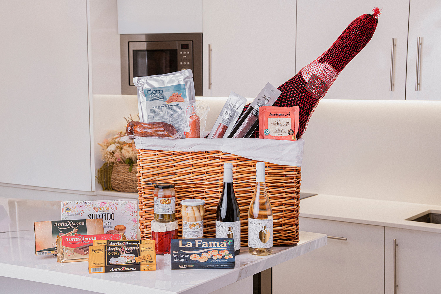 - El Lote Londres es un regalo navideño gourmet y de lujo, que combina jamón y embutidos selectos, quesos, vinos, conservas y dulces tradicionales de alta calidad. Presentado en una caja roja con motivos navideños (Ref. 5000) y caja jamonera (Ref. 8218), listo para regalar y lucir de forma elegante.