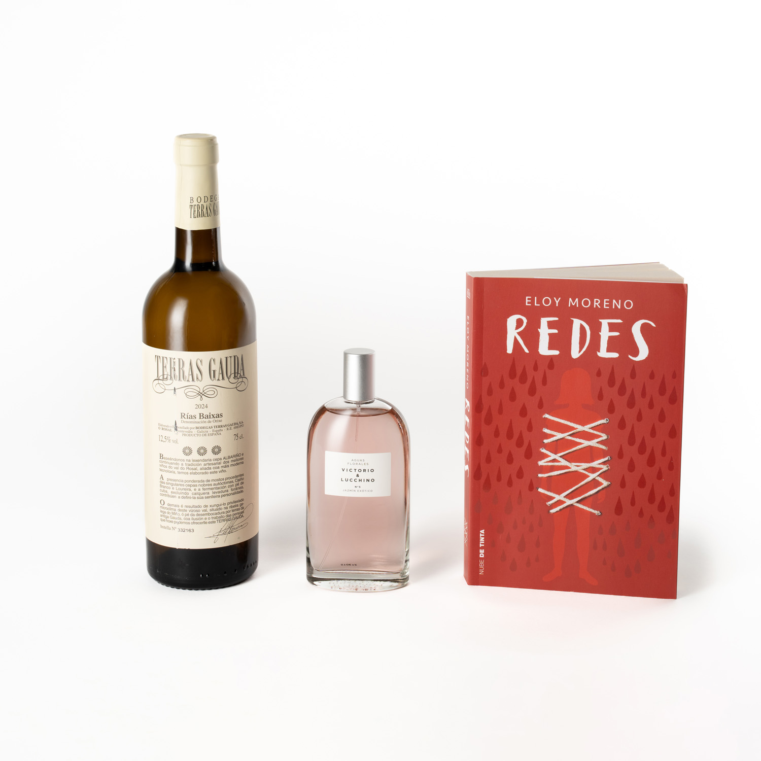 Caja regalo Eloy Moreno, albariño Terras Gaudas y perfume